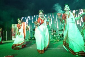 विश्वविद्यालय के स्टूडेंट काउंसिल की ओर से आयोजित डांडिया-2023 का शुभारंभ गणेश वंदना व दुर्गा पूजा के साथ हुआ। इसके बाद गरबा, डांडिया नृत्य ने पांडाल में मस्ती का माहौल बना दिया। द्रोणा बैंड की प्रस्तुतियों व सधे हुए गीतों और म्यूजिक की जुगलबंदी का सुरूर छात्र-छात्राओं पर छाया रहा।
