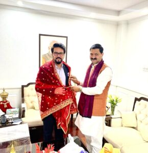 केंद्रीय सूचना प्रसारण मंत्री अनुराग ठाकुर से मिले बीकेटीसी अध्यक्ष अजेंद्र