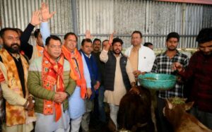 रूद्रपुर। जनसंपर्क अभियान के दौरान भाजपा मेयर प्रत्याशी विकास शर्मा ने ट्रेनिंग सेंटर में गौ रक्षा दल द्वारा आयोजित गौ पूजन कार्यक्रम में प्रतिभाग कर गौ पूजन किया। इस दौरान गौ रक्षा दल के सदस्यों न मेयर प्रत्याशी विकास शर्मा का समर्थन करते हुए जोरदार स्वागत किया और उन्हें जीत की अग्रिम बधाई। भाजपा प्रत्याशी ने विधायक शिव अरोरा सहित भाजपा नेताओं के साथ टेªनिंग सेंटर क्षेत्र में घर घर वोट भी मांगे।