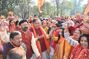 इसके उपरांत कैबिनेट मंत्री गणेश जोशी ने विजय कॉलोनी के सभी राम भक्तों द्वारा आयोजित शोभा यात्रा में सम्मिलित हुए। इस दौरान कैबिनेट मंत्री गणेश जोशी भगवान श्री राम के गीतों पर रामभक्तों के साथ थिरकते नजर आएं। नगर परिक्रमा के दौरान भारी संख्या में क्षेत्र के लोगों ने बढ़ चढ़कर हिस्सा लिया। तत्पश्चात कैबिनेट मंत्री गणेश जोशी ने देहरादून जोहड़ी गांव में पूर्व मंडल अध्यक्ष भाजपा राजीव गुरुंग के निजी आवास में आयोजित श्री अखण्ड रामायण पाठ कार्यक्रम में भी प्रतिभाग कर रामायण पाठ किया। इस अवसर पर उन्होंने पूजा अर्चना कर भगवान राम का आशिर्वाद प्राप्त कर प्रदेश वासियों की सुख समृद्धि की कामना की।