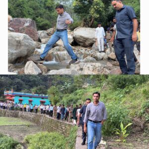 गाढ; गदेरे ढौंड ढंगार पार कर सरकार के प्रथम रिस्पांडर के रूप में डीएम पहुंचे आपदा प्रभावित परिवारों के पास।