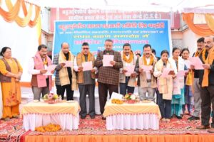 शपथ ग्रहण समारोह के दौरान मंत्री गणेश जोशी की उपस्थिति में नव-निर्वाचित पदाधिकारियों ने अपने दायित्वों का ईमानदारी, पारदर्शिता और समर्पण के साथ निर्वहन करने की शपथ ली