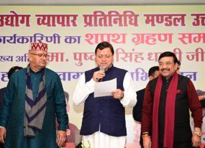 मुख्यमंत्री पुष्कर सिंह धामी ने प्रांतीय उद्योग व्यापार मंडल के सभी नवनिर्वाचित पदाधिकारियों को शुभकामनाएं देता हुए कहा कि आज सभी व्यापारियों से मिलने का सुअवसर प्राप्त हो रहा है। काशीपुर क्षेत्र से विशेष जुड़ाव है। व्यापारी राज्य एवं देश की अर्थव्यवस्था और वित्तीय शक्तियों की रीढ़ होने के साथ ही ब्रांड इंडिया के सच्चे राजदूत होते हैं। समाज, प्रदेश या राष्ट्र के विकास में व्यापारी वर्ग का योगदान स्वतः ही आ जाता है। व्यापारी वर्ग के योगदान के बिना श्रेष्ठ उत्तराखंड निर्माण का हमारा ’’संकल्प’’ पूर्ण नहीं हो सकता है।