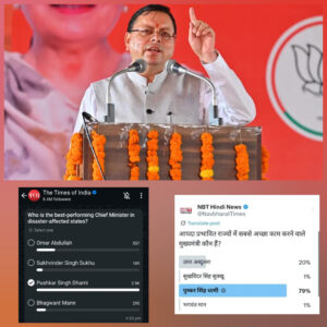 मुख्यमंत्री धामी के प्रशासनिक सक्रियता और त्वरित निर्णयों की टाइम्स ग्रुप सर्वे में जनता ने जमकर सराहना की