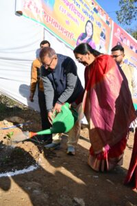 मंत्री गणेश जोशी ने अपनी धर्मपत्नी निर्मला जोशी के साथ मंदिर परिसर में पौधारोपण कर पर्यावरण संरक्षण का संदेश भी दिया