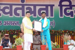स्वर्ण पदक अर्जित करने वाले प्रियांशु, रजत पदक प्राप्त करने वाले राहुल सरनालिया एवं एथलेटिक्स प्रशिक्षक लोकेश कुमार को भी मुख्यमंत्री द्वारा सम्मानित किया गया