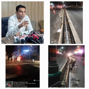जबकि राजपुर रोड में पुरानी जिर्णशीर्ण डिवाइड को हटाकर नई डिवाइड लगाने का कार्य योजना स्तर पर जारी है। डीएम के निर्देशों के अनुपालन में सड़क सुरक्षा के कार्यों को युद्ध स्तर पर मानक के अनुरूप पूर्ण किया जा रहा हैं।