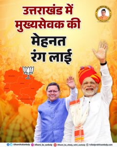शत प्रतिशत स्ट्राइक रेट के साथ तीसरी बार देवभूमि उत्तराखंड में सीएम धामी के नेतृत्व में भगवा लहराया