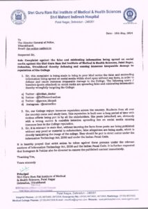 सोशल मीडिया, ट्विटर व इंस्टाग्राम पर भ्रामक जानकारियों को पोस्ट करने वालों के खिलाफ मेडिकल काॅलेज प्रबन्धन ने डीजीपी को लिखा शिकायती पत्र, कड़ी कार्रवाई की मांग की